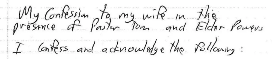 So why would a pastor immediately give a speech at Presbytery assuming a total lack of evidence before he even checked into it? I cannot speak with certainty about his personal motives, but there are several common reasons abuse is presented this way.First, abusers love to define abuse as a vague and mysterious matter. Abusers thrive on hazy ground. They do not feel they need to appear completely innocent. It is usually enough to muddy the water a bit. And water can be muddied any number of ways. Did Fred kick his wife in the face? Well, define ‘kick.’ Define ‘face.’ And do you know the intent of Fred’s heart? Perhaps Fred’s wife said something rude and she deserved to be kicked. Perhaps his wife was drunk and he was trying to sober her. Who knows why weeping women turn up in the emergency room with boot prints on their faces claiming to have been violently assaulted? It might be a hormone thing. Although this is clearly a fictional example, it is not far removed from reasoning I have heard many times around abuse cases. Abusers stir confusion whenever and wherever they can because it serves their purpose. They do not try to mount a coherent defense. They just throw random excuses at the wall, hoping something sticks. They give vague, self-contradictory accounts of events. They attack the character of the victim and witnesses. They claim to be scapegoats of society. They are not aiming to come out completely vindicated (which would be impossible). All they have to do is convince the bystanders that the situation is complicated. If the abuser succeeds, then the victim's supporters fade away and the victim stands alone. That is all the abuser needs to keep abusing.Secondly, bystanders are often all too eager to accept abusers’ chaotic version of the nature of abuse without examining the evidence. If a pastor acknowledges that abuse is happening, then he will be obligated to act on that. He will have to offer assistance to the victim. He may have to stand up to the abuser. He may have to question his own judgment about some of his friends and fellow pastors. He may have to call the police. All of those things are uncomfortable, time-consuming, and risky. It is much easier to adopt an attitude that “these things cannot be proven,” without ever actually bothering to look into it. Particularly in the Orthodox Presbyterian Church, refusing to hear evidence is often celebrated as noble, an effort to "preserve the good name" of accused man—which is all the abuser needs to keep abusing.Finally, some pastors who are “bystanders” are also abusers. Although we hope this is not a common reason for pastors to adopt such an attitude of disinterest in abuse cases, we must acknowledge that this also happens. If a pastor has done abusive things to members of his own congregation, he is not likely to want to put another man on trial for the same behavior. He cannot defend abuse in public, of course, so he may adopt the usual “who can really know?” tactic that leads to an easy dismissal.Having worked in domestic violence advocacy for some years now, I can say with certainty that abuse is usually remarkably easy to prove if someone wants to know the truth. Abusers tend to have a strong sense of entitlement and superiority, which leads to carelessness with evidence. They assume they will be able to talk their way out of any negative consequences, and sadly, they are often correct in that assumption—which leads to further carelessness with evidence. The more they get away with abuse, the less they worry about anyone knowing about it. And the evidence just keeps piling up.I have worked on an abuse case in which a woman had strangulation bruises and a broken wrist. The police literally arrive to find her abuser standing over her holding a baseball bat. But her abuser still tried to claim her case was unprovable because she “could have gotten those injuries anywhere.” I have worked on a case that was recorded by the woman from a cellphone in her pocket documenting threats to shoot her. The abuser still tried to claim the recording wasn’t “real evidence” because he didn’t plan to shoot her, just to scare her. “It’s classic ‘he said/she said’,” they both claimed. With so much obfuscation about abuse, it is perhaps unsurprising that a pastor in the Orthodox Presbyterian Church would begin an investigation by assuming (without even looking into it) that accusers have no evidence—that it is all “he said, she said.” But it is still disappointing. Those who have sworn to care for the flock should have a true interest in their welfare. Pre-judging a case before even opening an evidence file, or in some cases refusing to even look at evidence--these are not noble actions for overseers charged with the care of vulnerable people. “He said, she said” is largely a myth perpetuated by people who (for whatever personal reasons they may have) do not want to know whether abuse is happening. For those who do want to know, the evidence is usually abundant and overwhelming. In our case, the evidence included eight witnesses, hundreds of documents including two abuser confessions, and several photos and recordings. The problem wasn’t at any point a lack of evidence provided by the women. But no amount of evidence will convince someone who doesn’t want to know.(Image at the top of the page is the first line of a confession letter hand-written by one of the abusers in our case, witnessed by two members of the Session.)